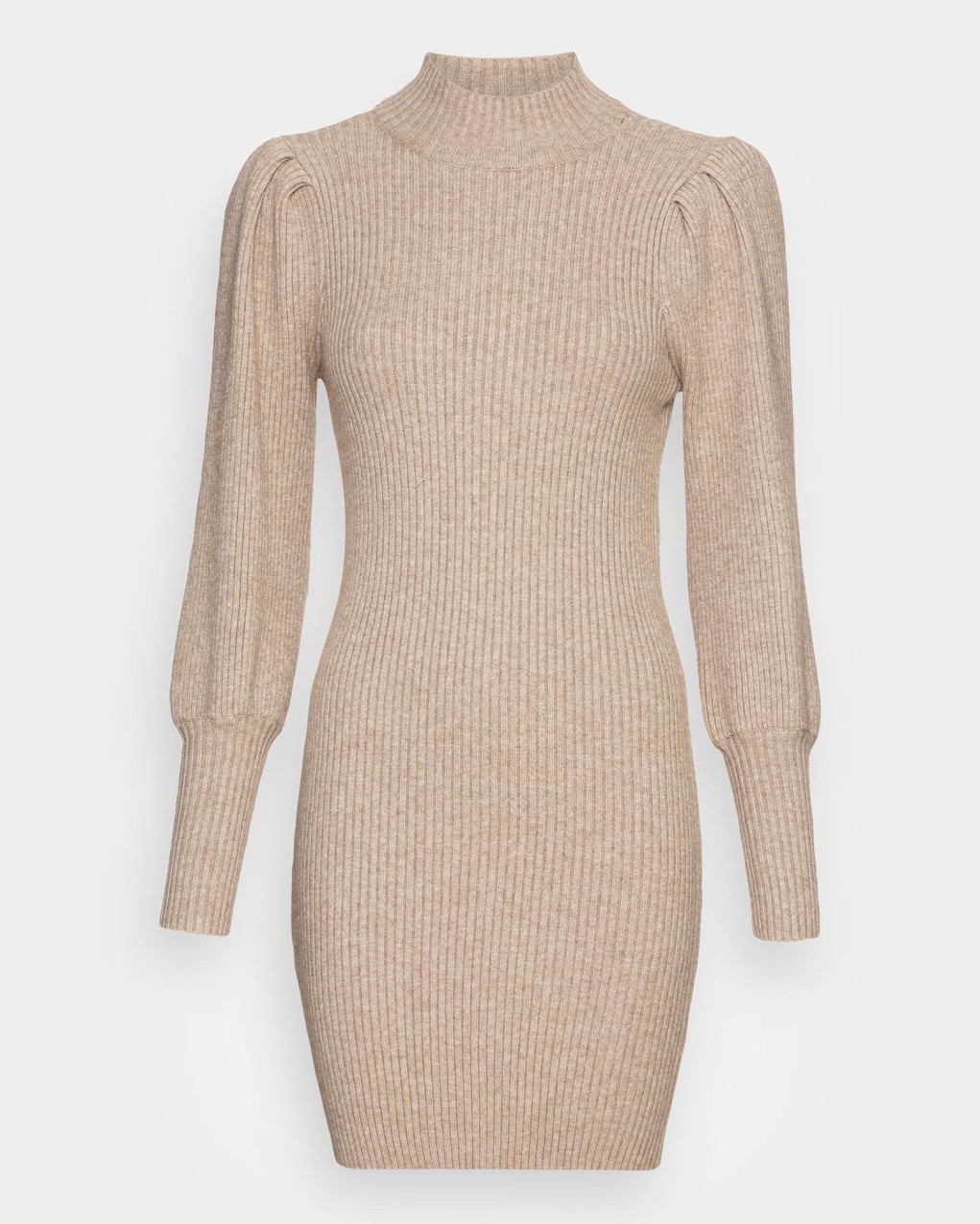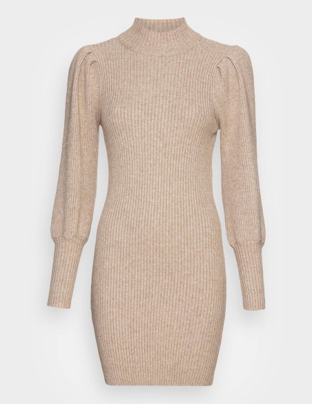 Abito in maglia corto dal design elegante e femminile, caratterizzato da maniche a sbuffo voluminose e collo alto. Realizzato in morbido tessuto a coste che offre comfort ed elasticità, questo capo presenta una silhouette aderente che valorizza la figura. La vestibilità è slim fit con lunghezza mini, perfetto per occasioni casual-chic o serate informali. Un essenziale versatile del guardaroba che unisce stile contemporaneo e praticità.