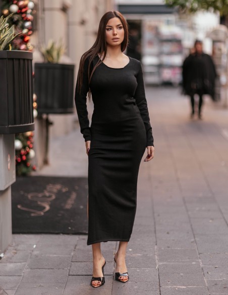 Elegante abito lungo da donna dallo stile essenziale e contemporaneo, perfetto per occasioni casual-chic o serate informali. Realizzato in morbido tessuto stretch che garantisce comfort e libertà di movimento, presenta maniche lunghe e scollo tondo classico. La vestibilità aderente esalta la silhouette femminile, mentre la lunghezza midi dona un look sofisticato e versatile, ideale da abbinare con tacchi o sneakers per diversi stili.