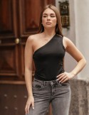 Body halter dal design sensuale ed elegante, perfetto per serate speciali e occasioni glamour. Realizzato in morbido tessuto satinato con inserti in tulle trasparente sul décolleté, che creano un sofisticato gioco di trasparenze. Il modello presenta una scollatura a V profonda e allacciatura al collo che valorizza la silhouette. Vestibilità aderente che esalta le forme femminili, ideale da abbinare a pantaloni o gonne a vita alta.
