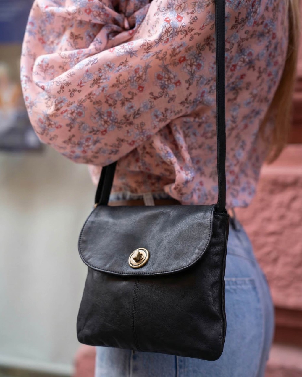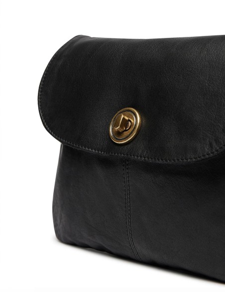 borsa a tracolla in pelle dal design minimalista e versatile, perfetta per l'uso quotidiano. Realizzata in pelle con texture granulosa, presenta una pattina curva con chiusura a girello metallico centrale.
