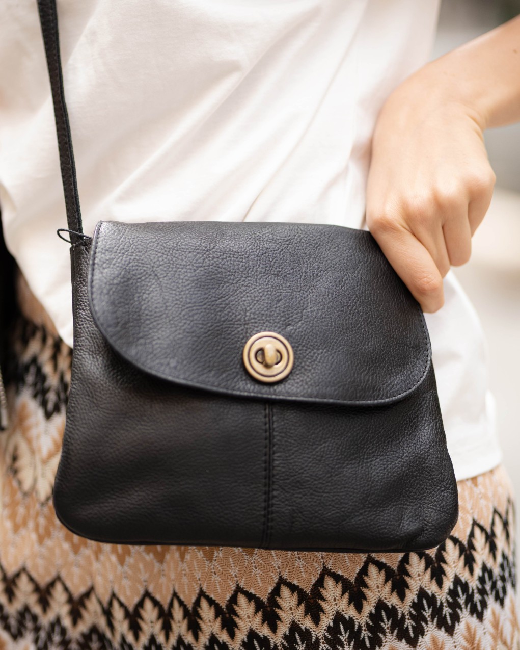 borsa a tracolla in pelle dal design minimalista e versatile, perfetta per l'uso quotidiano. Realizzata in pelle con texture granulosa, presenta una pattina curva con chiusura a girello metallico centrale.