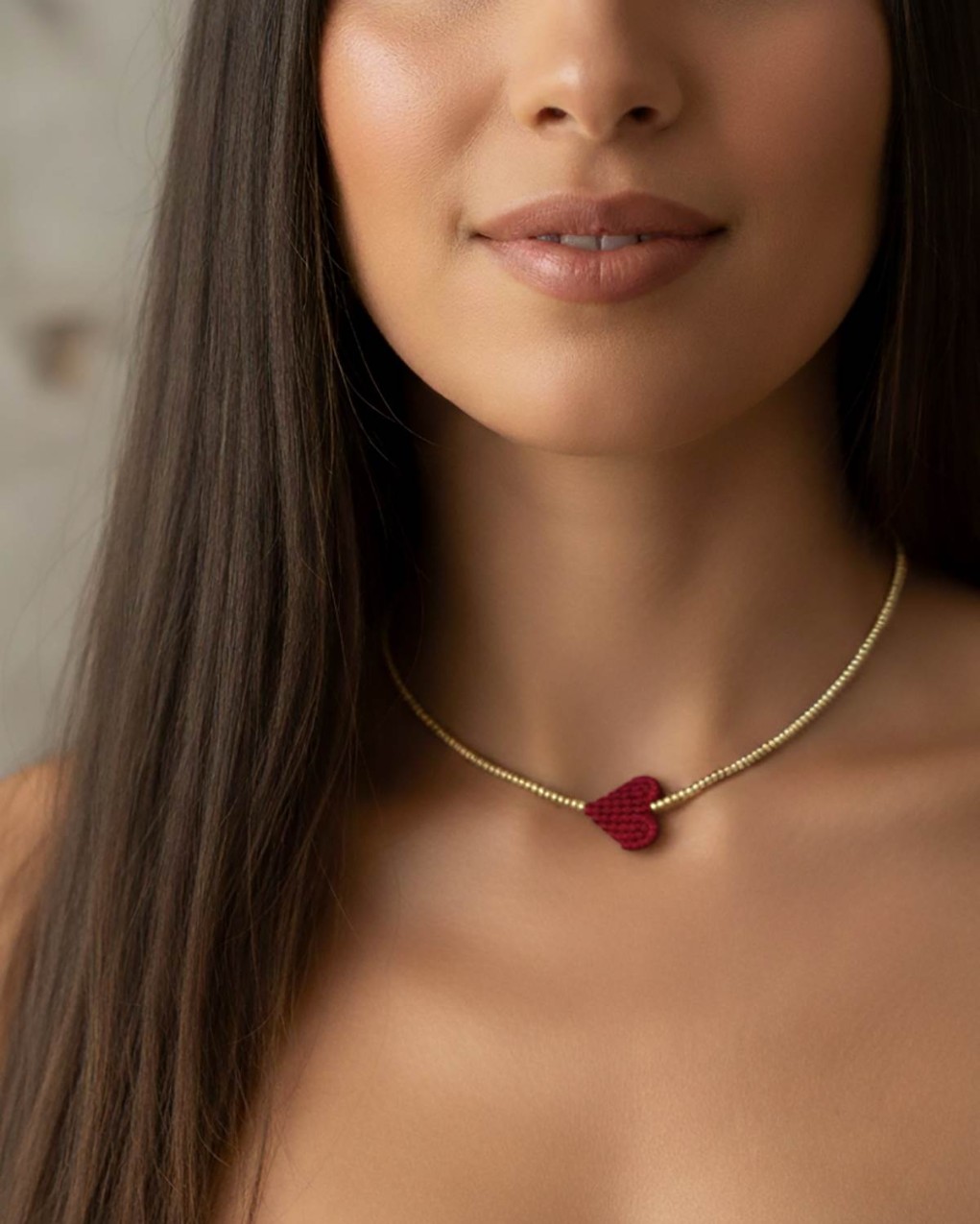 Collana in perline con cuore in macramè lunghezza 38cm non regolabile chiusura con bottoncino