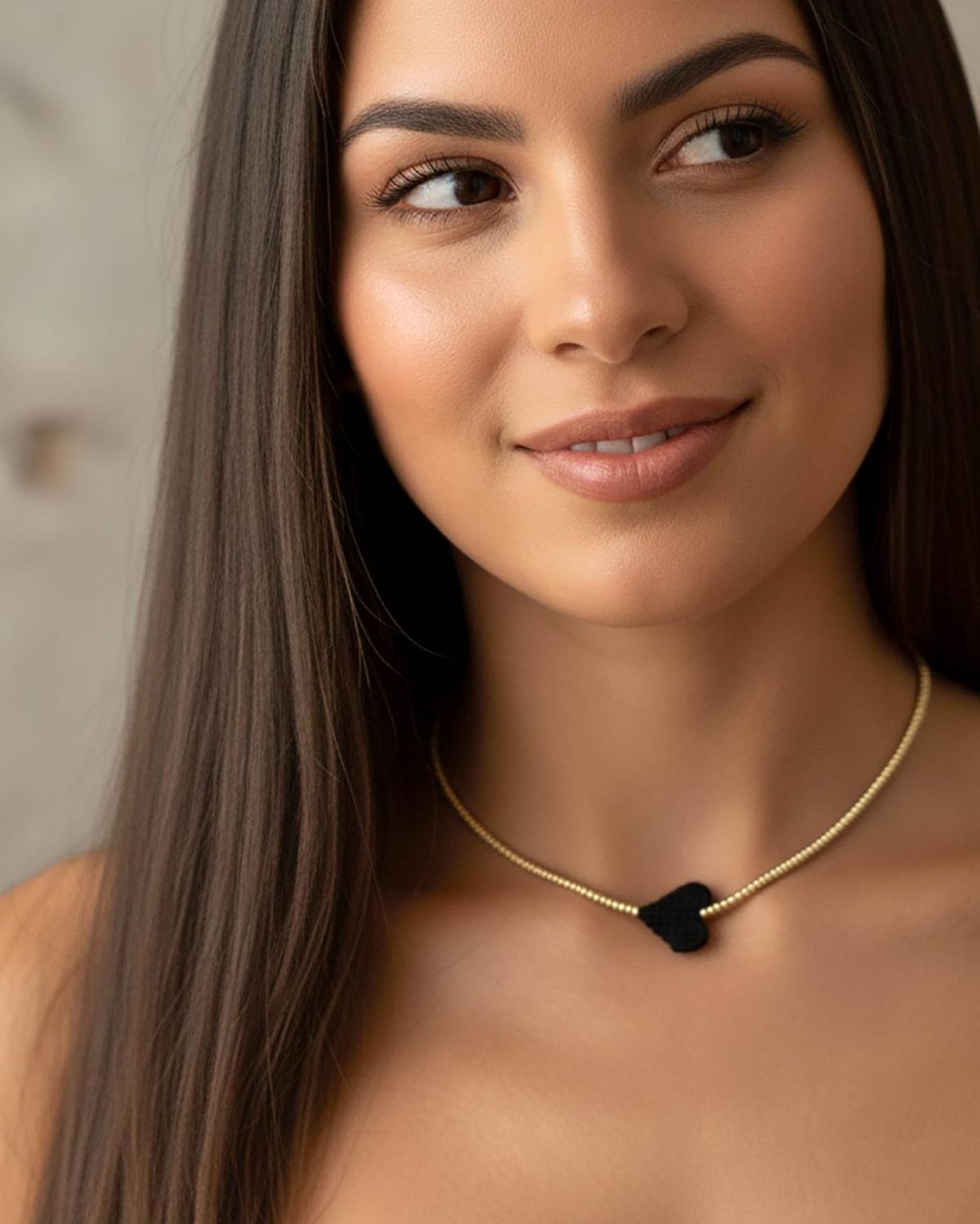 Collana in perline con cuore in macramè lunghezza 38cm non regolabile chiusura con bottoncino