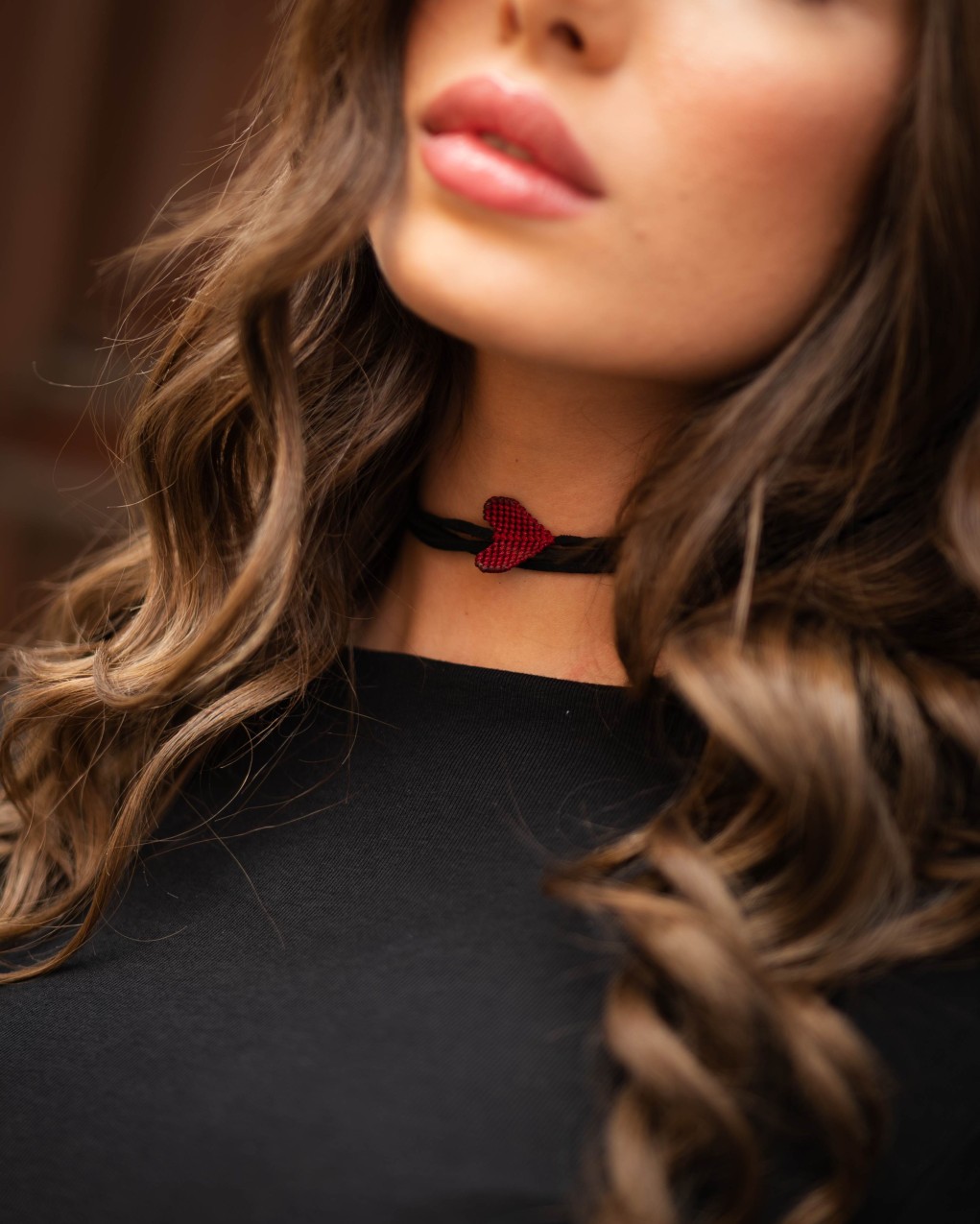 Elegante choker minimalista con delicato charm a forma di cuore. Choker con filo in camoscio lungo , può essere indossato anche come bracciale, la chiusura regolabile garantisce una vestibilità personalizzata. Un accessorio raffinato che aggiunge un tocco romantico e sofisticato a qualsiasi outfit.