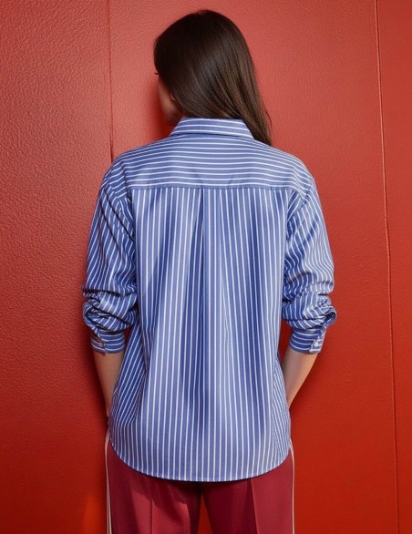 ●Camicia dal taglio oversize realizzata in pregiato cotone a righe, caratterizzata da una vestibilità comoda e rilassata. Il design classico è impreziosito da dettagli raffinati come i polsini con bottoni multipli e la piega sul retro. La costruzione sartoriale e il tessuto di alta qualità garantiscono comfort e stile per un capo versatile adatto a diverse occasioni.