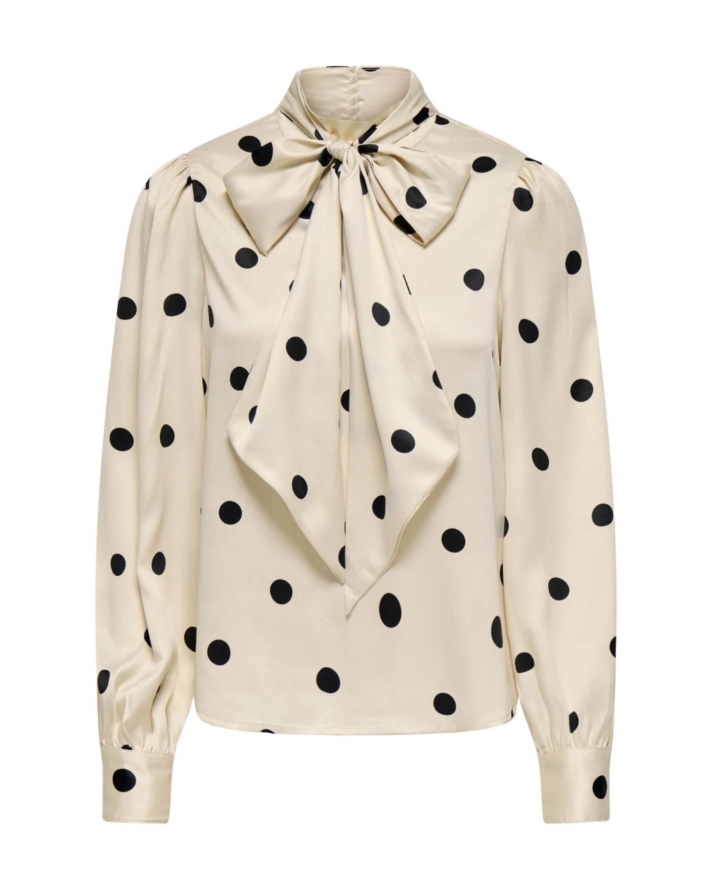 ●Elegante blusa a pois con collo alto e raffinati bottoni decorativi. Realizzata in morbido tessuto satinato, presenta maniche a palloncino con polsini abbottonati per un tocco vintage. Il taglio leggermente rilassato e la chiusura posteriore con bottoni la rendono perfetta per outfit sia formali che casual.