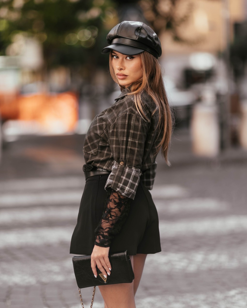 Camicia oversize in flanella a quadri con dettagli in pizzo sulle maniche, realizzata in morbido cotone di alta qualità. Il design versatile presenta una tasca frontale, bottoni classici e polsini elasticizzati per un comfort ottimale. La vestibilità ampia e casual la rende perfetta per essere indossata sia dentro che fuori la gonna, ideale per creare look casual-chic e stratificati.