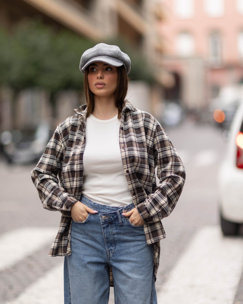 Camicia oversize a quadri dal taglio rilassato e confortevole, perfetta per un look casual-chic. Presenta una vestibilità ampia con maniche lunghe e chiusura frontale con bottoni. Si abbina facilmente a jeans e t-shirt per creare outfit versatili e alla moda.