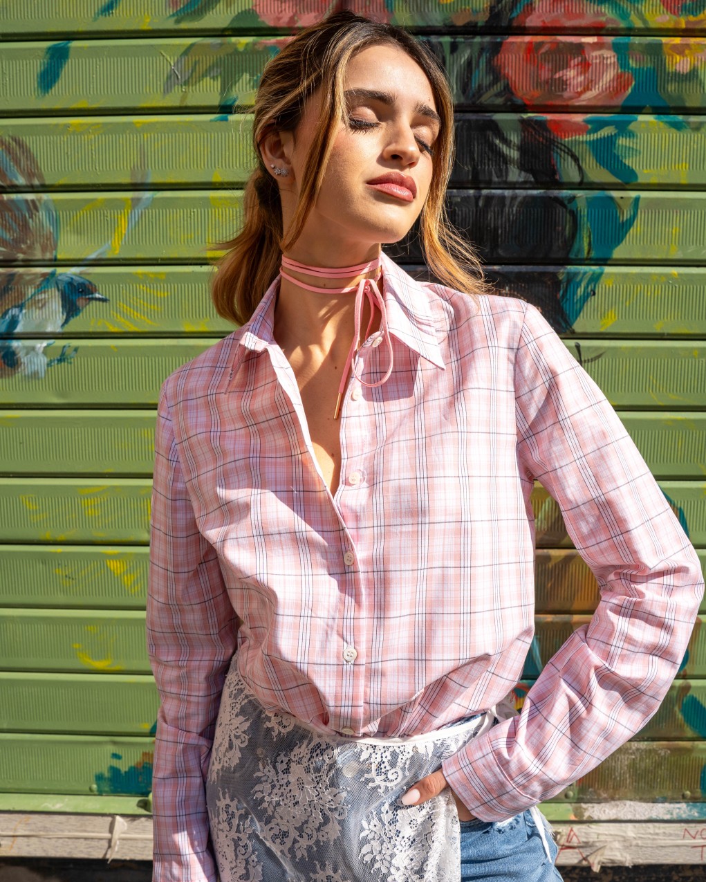 Camicia femminile dallo stile contemporaneo con elegante fantasia a quadri. Caratterizzata da colletto classico con dettaglio fiocco removibile, chiusura frontale con bottoni e maniche lunghe. Realizzata in tessuto leggero e confortevole, offre una vestibilità regolare perfetta per look casual-chic o da ufficio. Capo versatile ideale per essere abbinato a pantaloni, gonne o jeans.