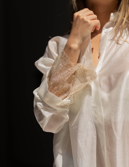 Camicia con polsini in paillettes, elegante e luminosa, perfetta per aggiungere un tocco glamour ai look più raffinati.