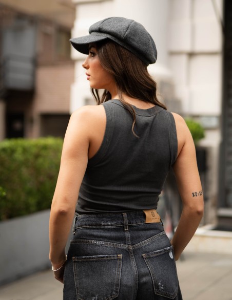 Canotta basic a costine realizzata in morbido cotone elasticizzato con taglio aderente e scollatura ampia. Il design essenziale presenta spalline larghe e bordo arrotondato che garantiscono comfort e vestibilità ottimale. Perfetta come capo basic da abbinare a jeans e casual wear per look urban contemporanei.