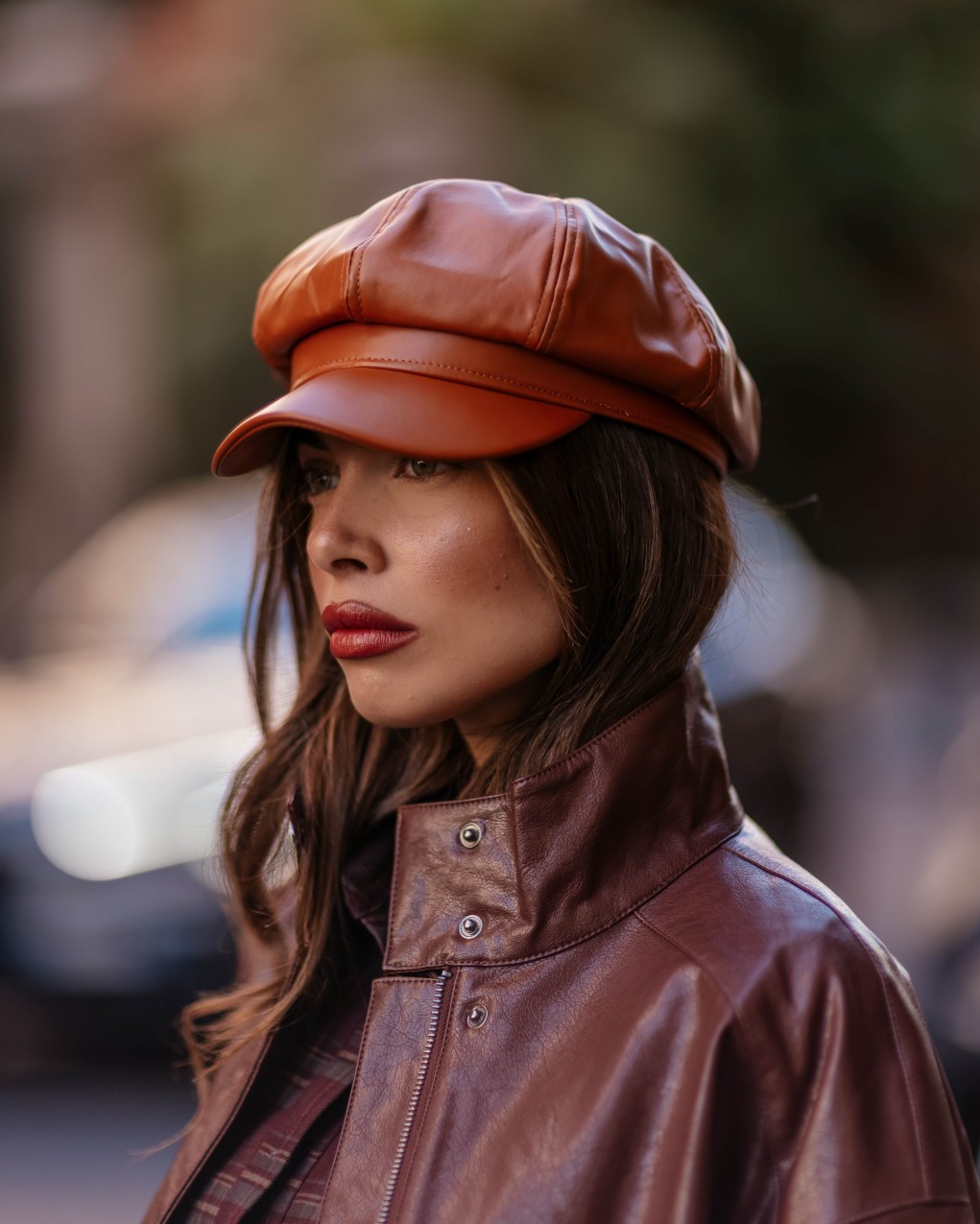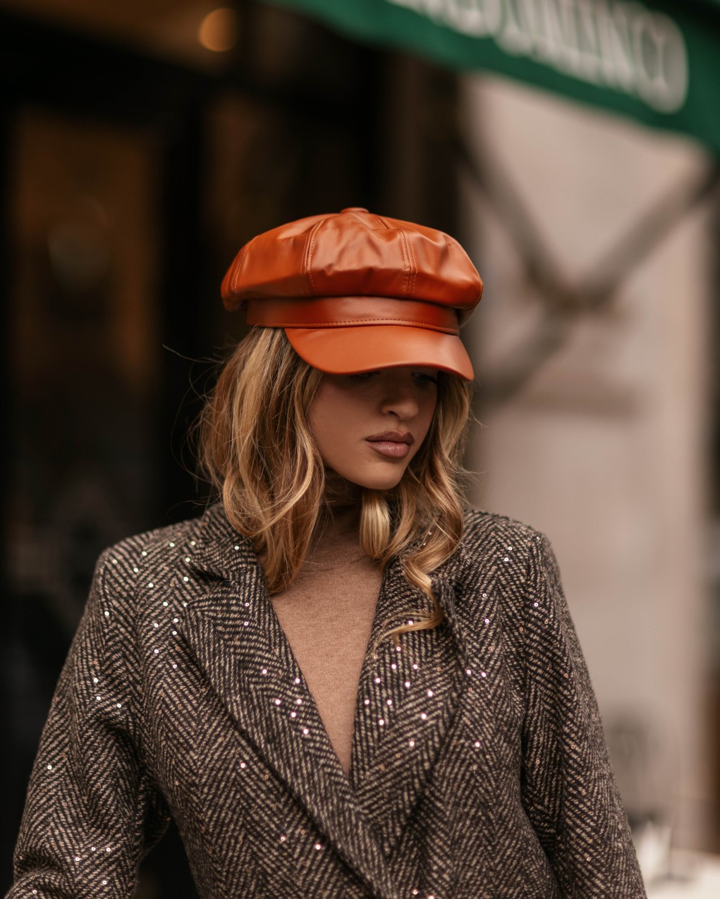Elegante berretto stile newsboy in morbida pelle sintetica di alta qualità, caratterizzato da una silhouette strutturata con visiera pronunciata. La costruzione a otto pannelli offre una vestibilità confortevole e adattabile, mentre le cuciture rinforzate garantiscono durata nel tempo. Un accessorio versatile che unisce il fascino vintage al comfort contemporaneo.
