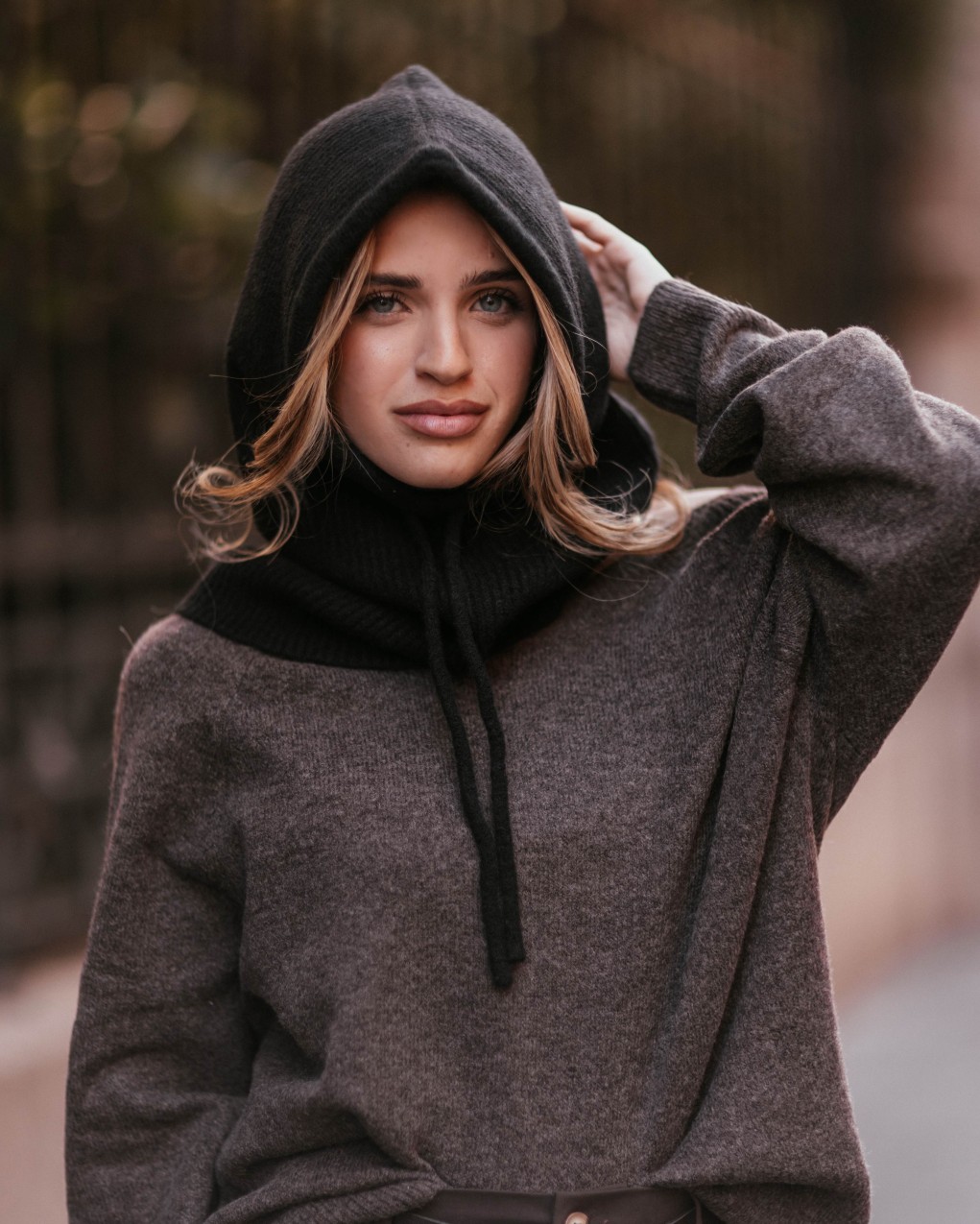 Elegante e pratico, questo cappello balaclava in lana offre comfort e stile per le giornate più fredde. Il design avvolgente protegge sia la testa che il collo, mantenendoti al caldo con un tocco di raffinatezza. Il morbido tessuto in lana garantisce una sensazione di comfort durante tutta la giornata. Perfetto per chi cerca un accessorio trendy e funzionale, adatto sia per la città che per le avventure all’aria aperta.