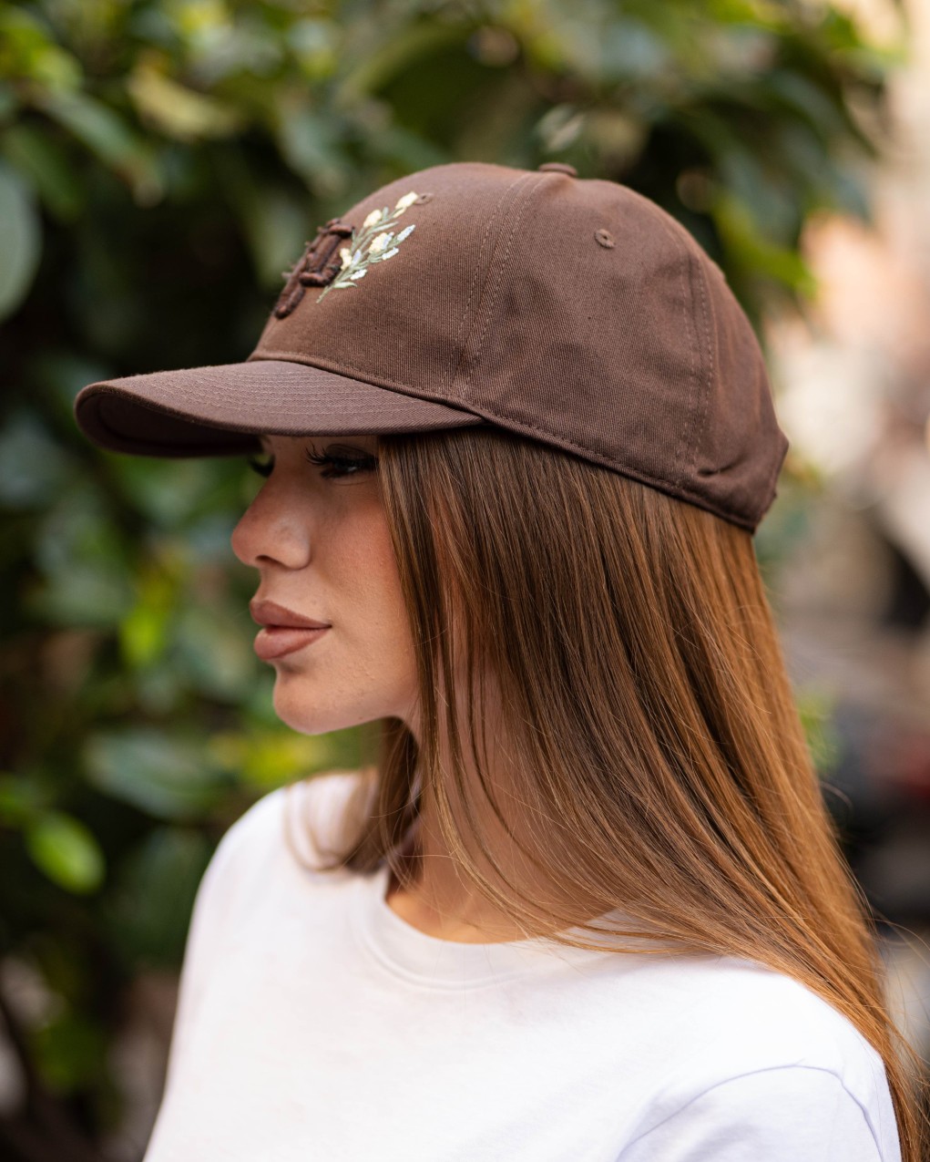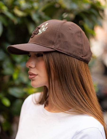 Cappellino baseball in stile casual caratterizzato da un elegante ricamo con logo e dettaglio floreale sulla parte frontale. Realizzato in tessuto resistente e traspirante, ideale per un look quotidiano contemporaneo. La struttura classica a sei pannelli con visiera curva garantisce una vestibilità confortevole e regolabile, adatta a diverse misure.
