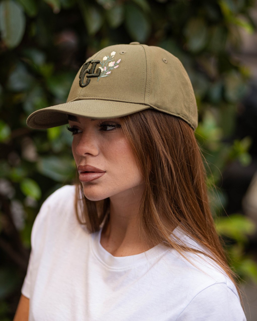 Cappellino baseball in stile casual caratterizzato da un elegante ricamo con logo e dettaglio floreale sulla parte frontale. Realizzato in tessuto resistente e traspirante, ideale per un look quotidiano contemporaneo. La struttura classica a sei pannelli con visiera curva garantisce una vestibilità confortevole e regolabile, adatta a diverse misure.