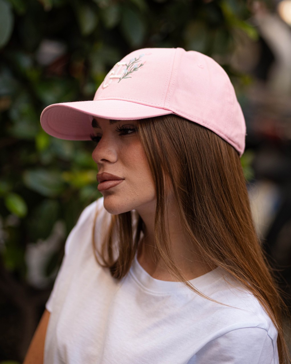 Cappellino baseball in stile casual caratterizzato da un elegante ricamo con logo e dettaglio floreale sulla parte frontale. Realizzato in tessuto resistente e traspirante, ideale per un look quotidiano contemporaneo. La struttura classica a sei pannelli con visiera curva garantisce una vestibilità confortevole e regolabile, adatta a diverse misure.