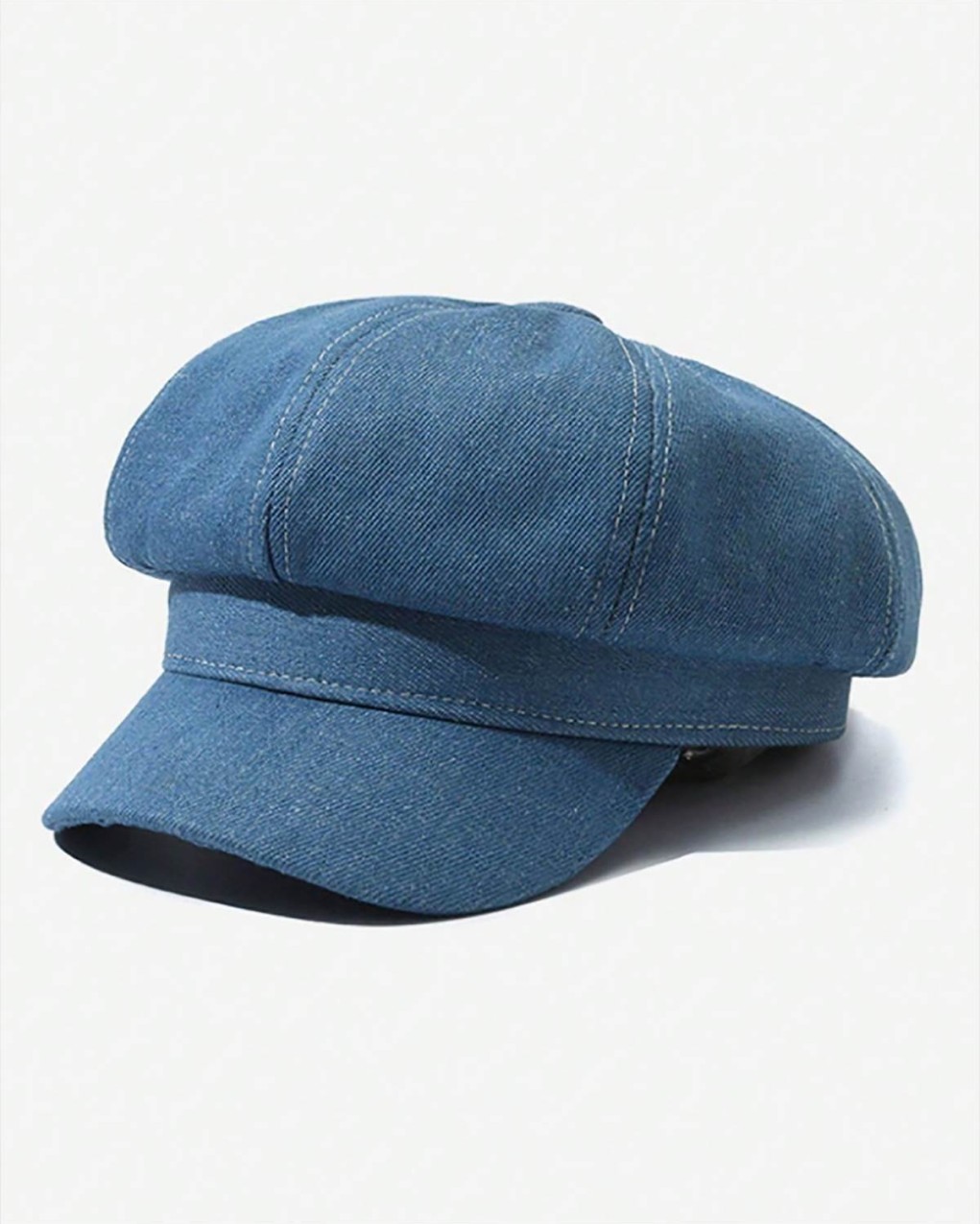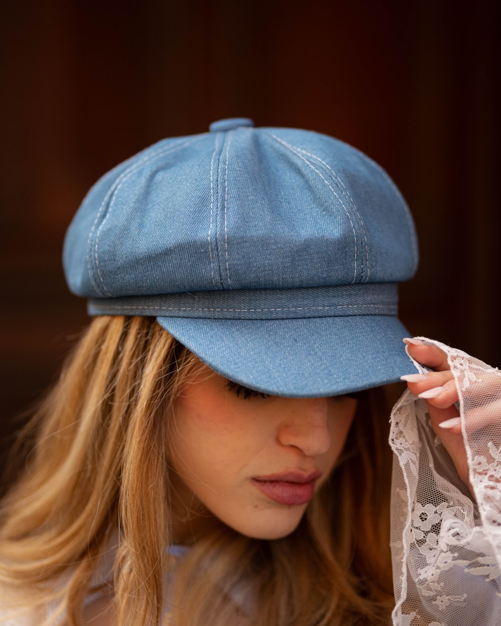 Cappello stile baker boy in denim morbido, perfetto per un look casual-chic contemporaneo. Caratterizzato da corona voluminosa a otto spicchi e visiera corta strutturata, questo accessorio unisce il fascino vintage al comfort quotidiano. Realizzato in tessuto denim di qualità, offre una vestibilità comoda e regolabile che si adatta a diverse circonferenze. Ideale per completare outfit informali con un tocco di carattere e personalità.