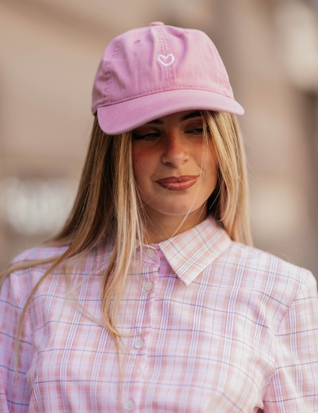 Cappellino baseball in stile casual con visiera curva e cuore sul frontale. Realizzato in cotone morbido e resistente, presenta una struttura non strutturata per un comfort ottimale durante l'uso quotidiano. Accessorio versatile perfetto per completare look informali con un tocco giovanile e trendy.