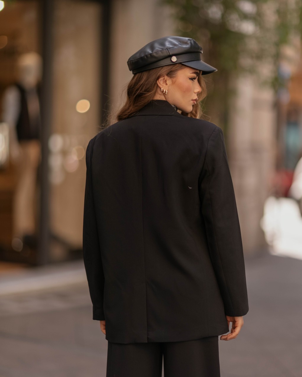 Blazer oversize dal taglio contemporaneo, realizzato in morbido tessuto tecnico di alta qualità. La silhouette rilassata e le spalle strutturate creano un equilibrio perfetto tra comfort ed eleganza. La costruzione sartoriale include dettagli raffinati come il colletto classico e le cuciture precise, garantendo versatilità per look sia formali che casual.