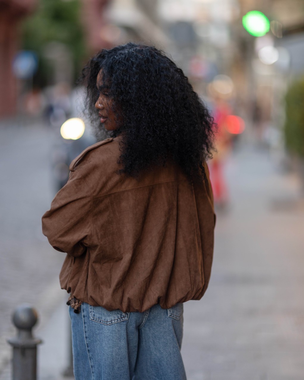 Giubbotto in pregiata pelle scamosciata dal taglio oversize, caratterizzata da una silhouette morbida e contemporanea. Il design presenta maniche ampie con polsini elasticizzati e una vestibilità rilassata che si adatta perfettamente a diversi stili. La lavorazione artigianale della pelle e le rifiniture di alta qualità garantiscono durevolezza e un look sofisticato per ogni occasione.
