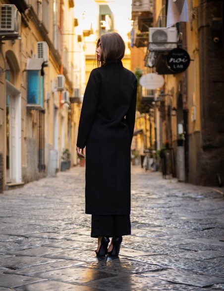 Cappotto lungo elegante dalla linea minimalista e raffinata. Il taglio dritto e la silhouette essenziale donano un'allure sofisticata, mentre la lunghezza maxi si adatta perfettamente a look formali e casual-chic. La manifattura sartoriale e i dettagli minimal garantiscono vestibilità impeccabile e stile senza tempo.