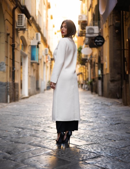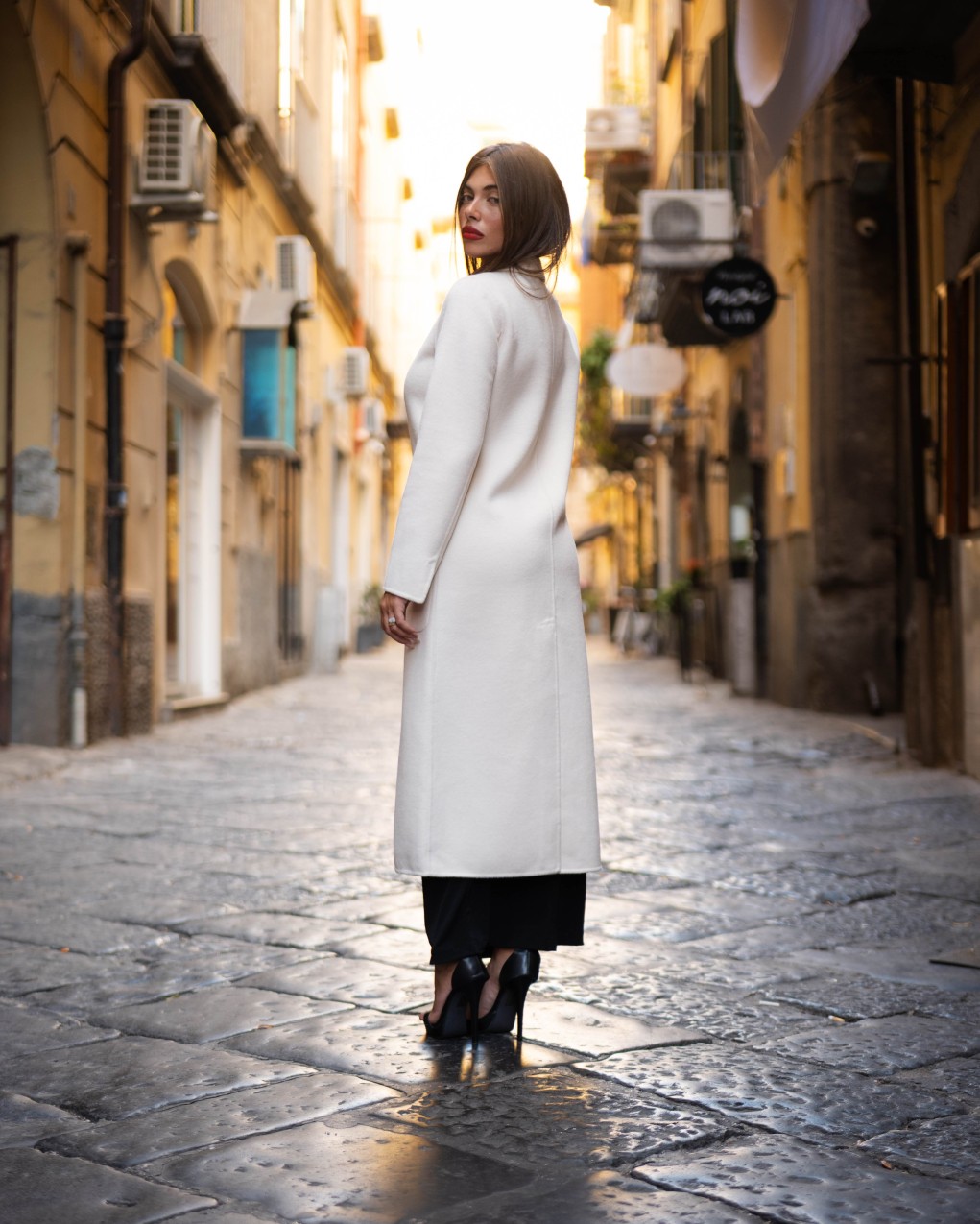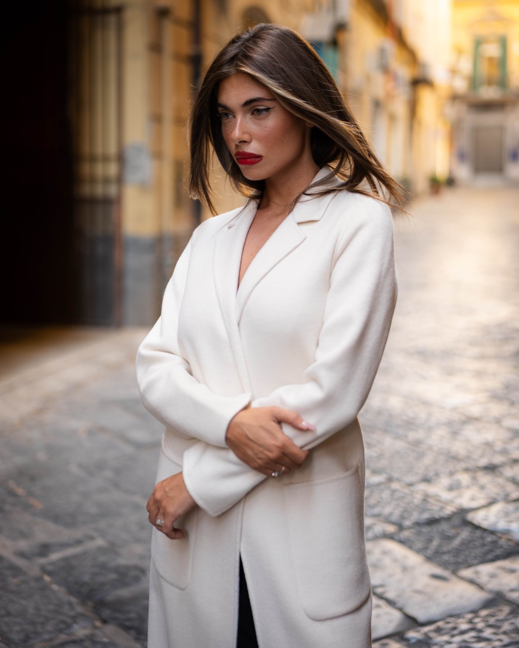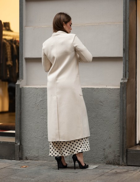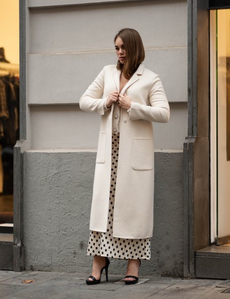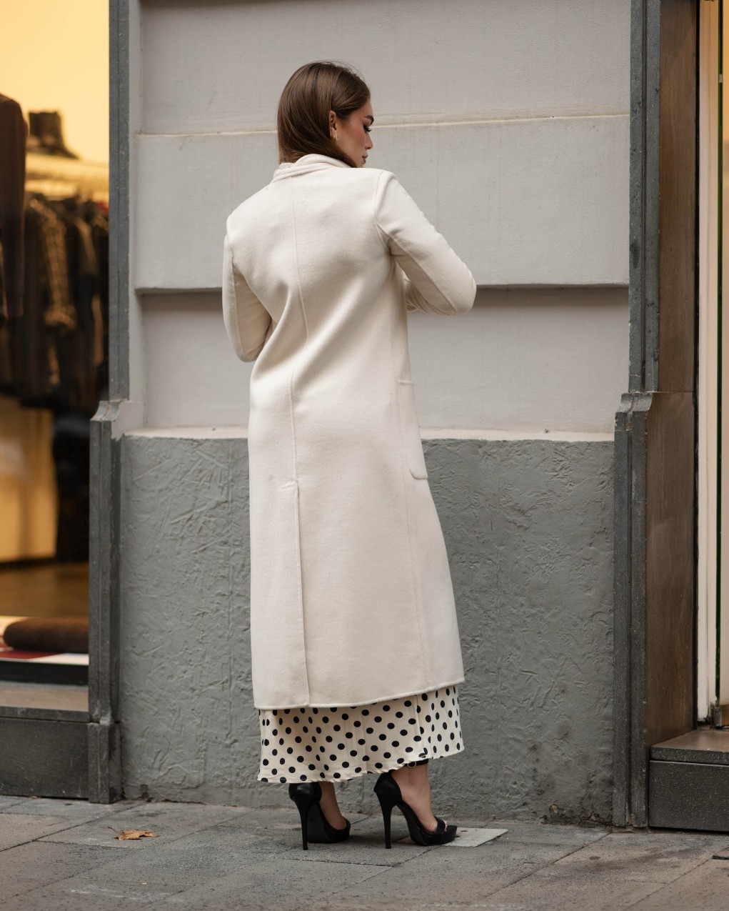 Cappotto lungo elegante dalla linea minimalista e raffinata. Il taglio dritto e la silhouette essenziale donano un'allure sofisticata, mentre la lunghezza maxi si adatta perfettamente a look formali e casual-chic. La manifattura sartoriale e i dettagli minimal garantiscono vestibilità impeccabile e stile senza tempo.