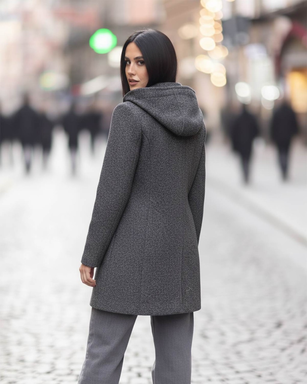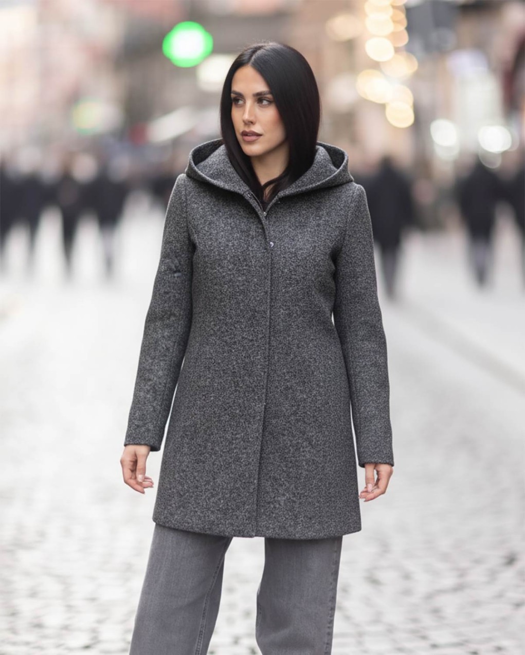 Cappotto invernale dalla linea minimalista e contemporanea, realizzato in pregiato tessuto di lana. La silhouette elegante e la vestibilità midi si accompagnano a dettagli raffinati come il cappuccio integrato e la chiusura con bottoni nascosti. Un capo versatile che unisce comfort e stile metropolitano, perfetto per le giornate più fredde.
