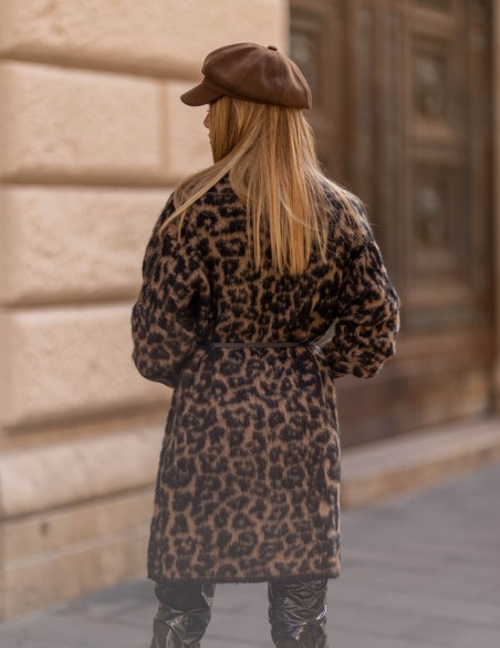 Grintoso ma versatile, questo cardigan a mezza lunghezza si distingue per la stampa animalier e il design aperto, perfetto da sovrapporre ai tuoi outfit quotidiani. Completa il look la cintina sottile in ecopelle, che definisce delicatamente il punto vita. Senza tasche per un profilo pulito e moderno.