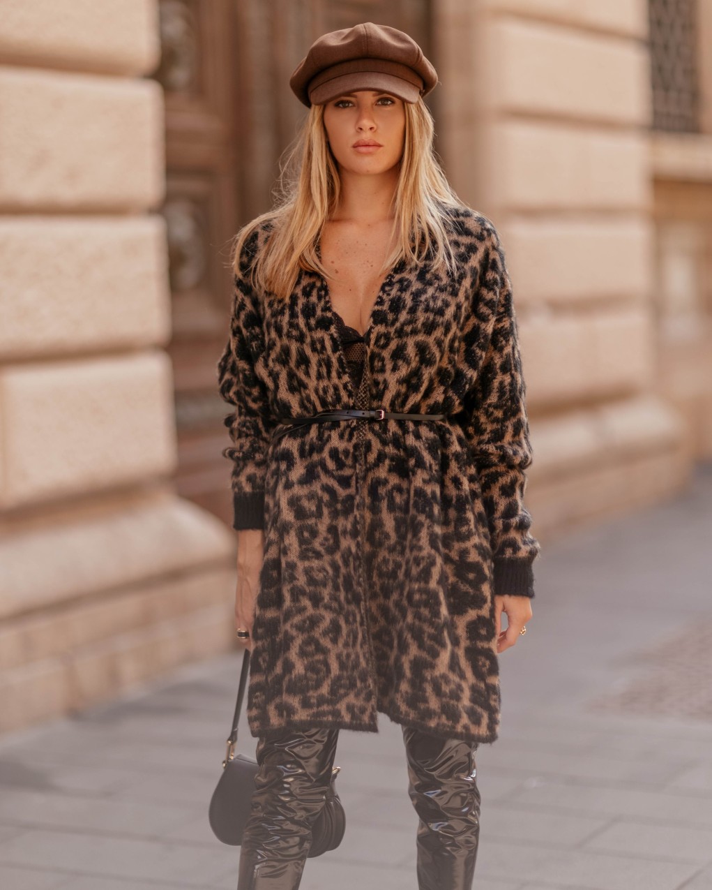 Grintoso ma versatile, questo cardigan a mezza lunghezza si distingue per la stampa animalier e il design aperto, perfetto da sovrapporre ai tuoi outfit quotidiani. Completa il look la cintina sottile in ecopelle, che definisce delicatamente il punto vita. Senza tasche per un profilo pulito e moderno.