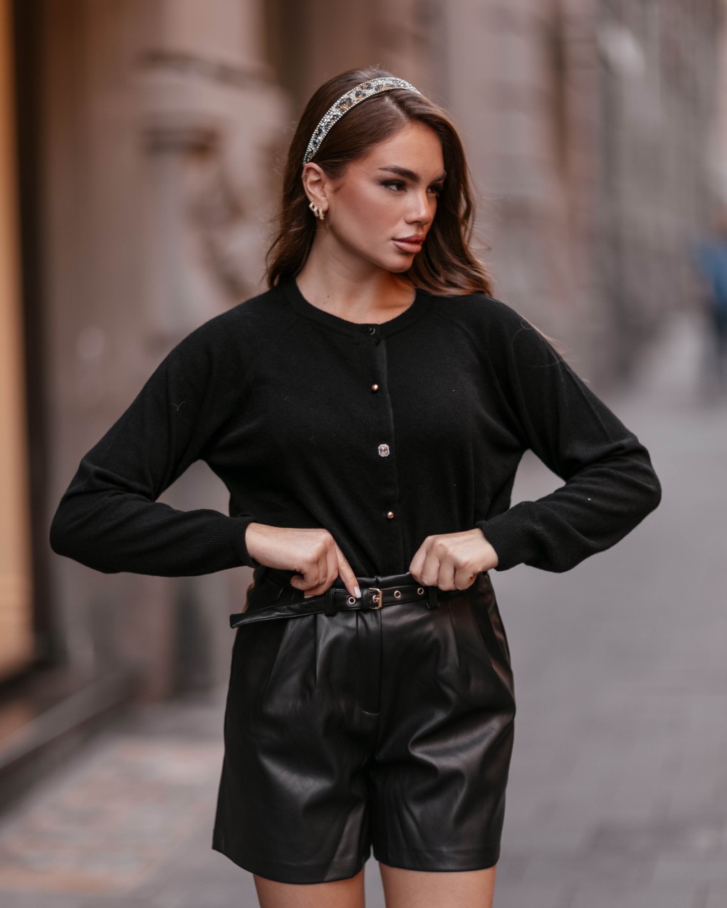 Elegante cardigan femminile in maglia fine con chiusura frontale a bottoni gioiello, perfetto per outfit sofisticati e versatili. Il design presenta girocollo classico e maniche lunghe con polsini a costine, ideale per la mezza stagione. Realizzato in tessuto morbido e confortevole, offre una vestibilità regolare che valorizza la silhouette senza stringere.