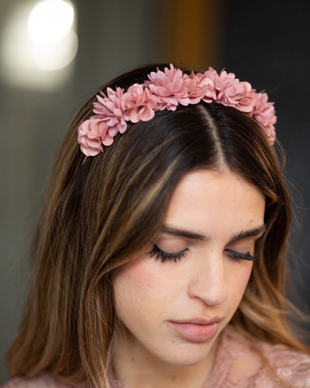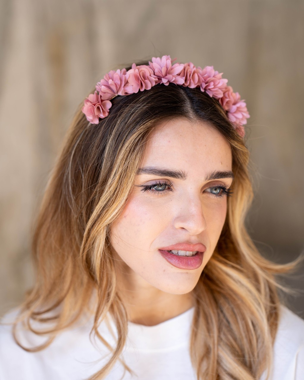 Cerchietto floreale dallo stile romantico ed elegante, perfetto per cerimonie e occasioni speciali. Realizzato con delicati fiori in tessuto disposti uniformemente lungo tutta la struttura, garantisce un look sofisticato e femminile. La base rigida assicura una vestibilità comoda e stabile, mantenendo la posizione per tutto il giorno. Accessorio versatile ideale per acconciature sia raccolte che sciolte.