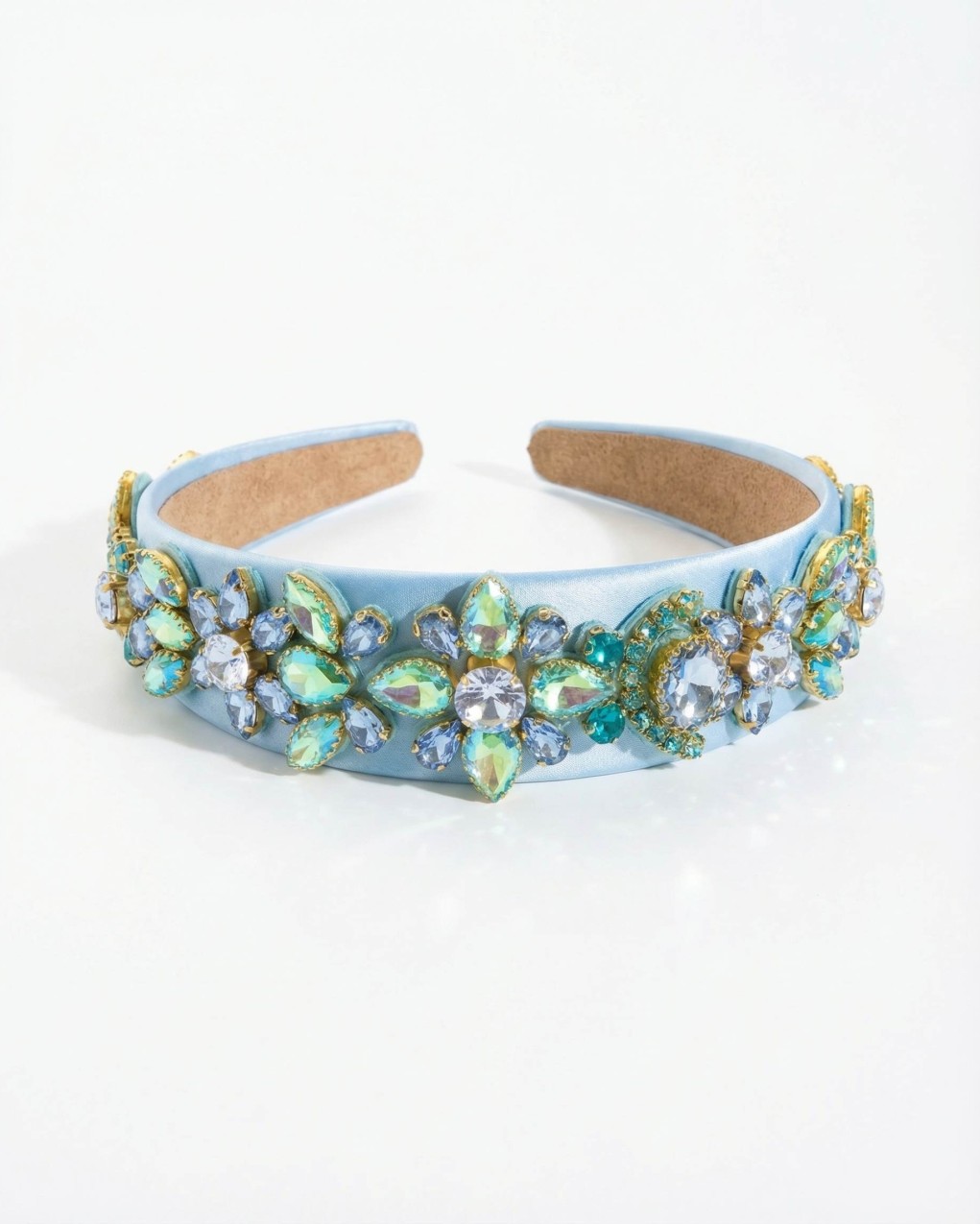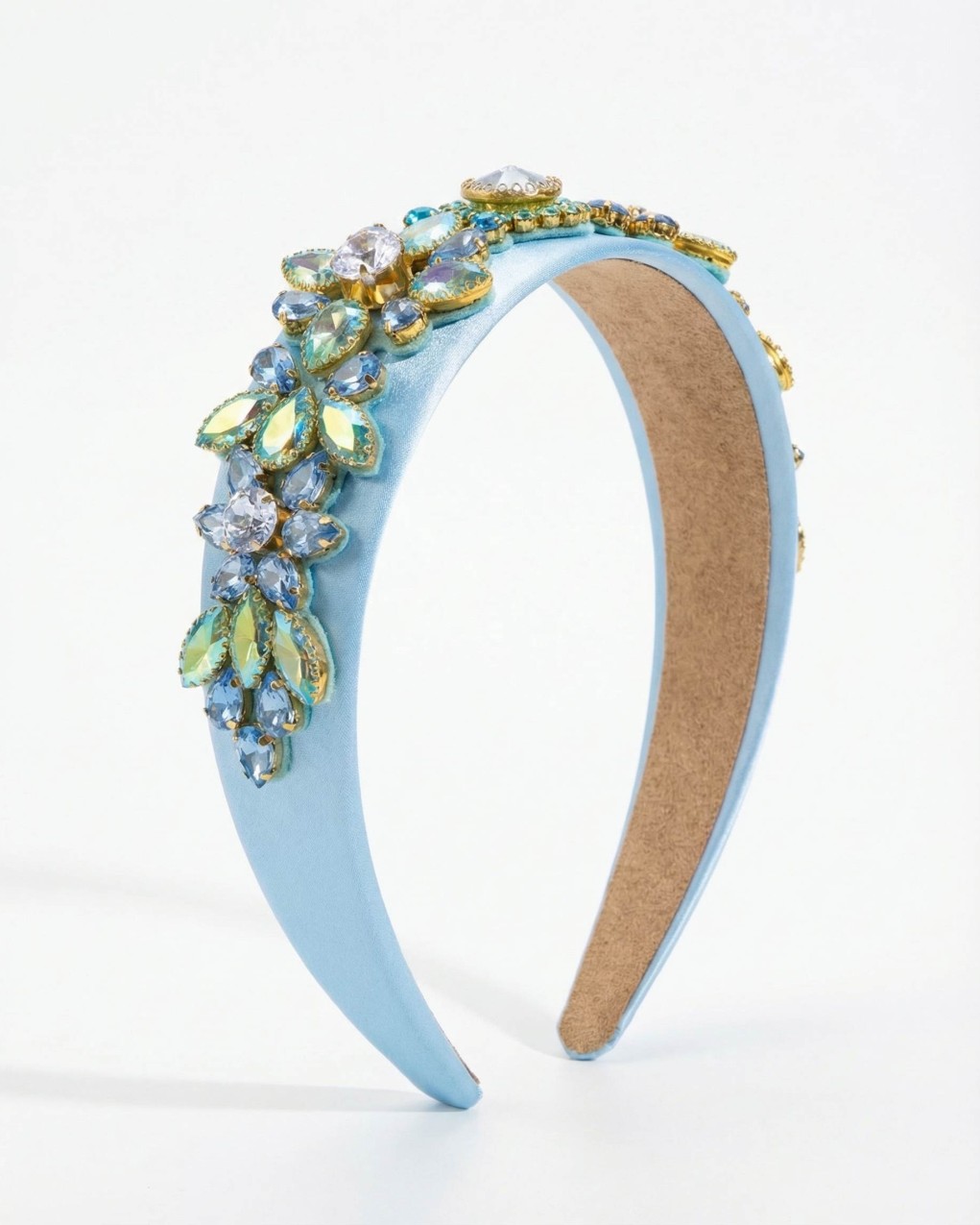 Cerchietto per capelli di lusso rifinito con eleganti applicazioni di cristalli e strass incastonati a motivo floreale. Realizzato con base imbottita rivestita in raso e interno foderato per un comfort ottimale. Le decorazioni gioiello disposte lateralmente donano un tocco glamour e sofisticato, perfetto per occasioni speciali ed eventi eleganti. La struttura rigida garantisce una vestibilità stabile e confortevole durante tutto il giorno.