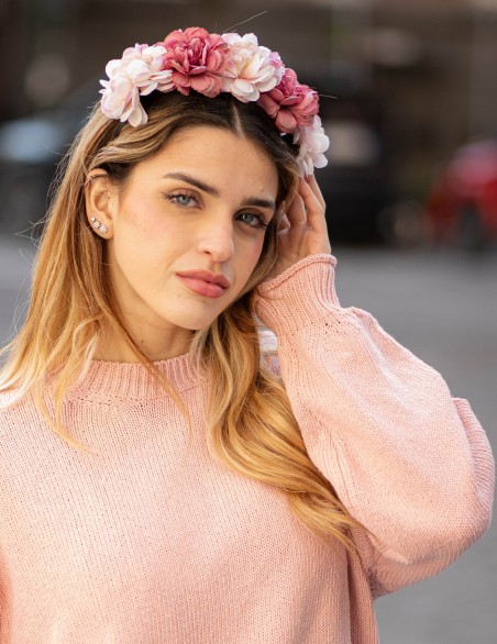 Cerchietto decorativo con fiori in tessuto dallo stile romantico e femminile, perfetto per cerimonie ed eventi speciali. Realizzato con fiori artificiali in tessuto di alta qualità disposti su base rigida, garantisce una tenuta sicura e confortevole. La struttura è regolabile e si adatta a diverse circonferenze, assicurando una vestibilità ottimale per tutto il giorno. Accessorio versatile ideale per matrimoni, feste ed occasioni eleganti.