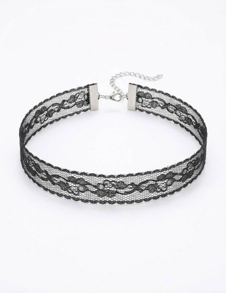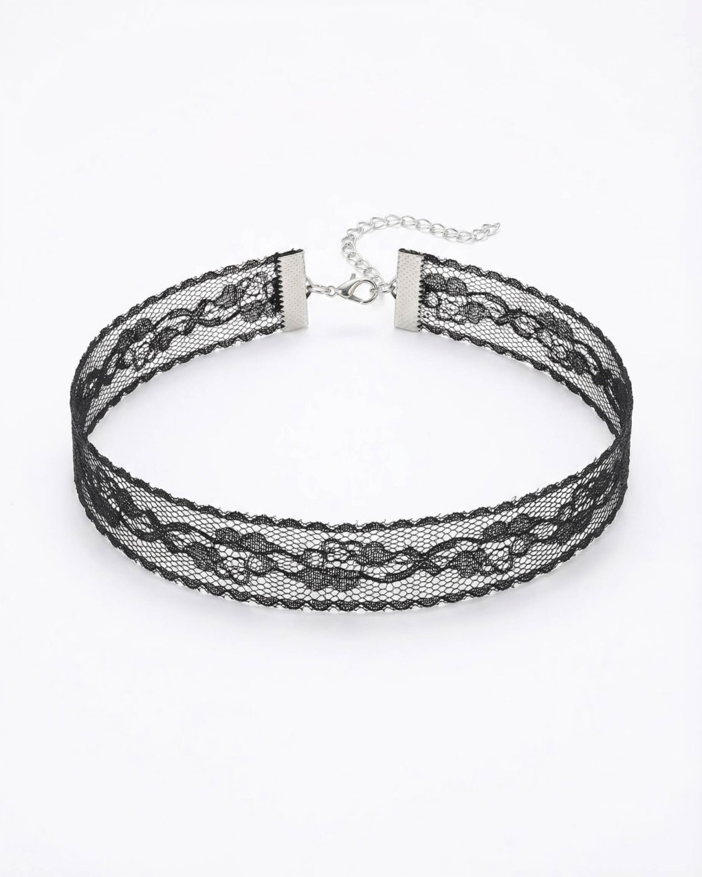 Elegante choker girocollo in pizzo con design decorativo a fascia. Questo accessorio dallo stile contemporaneo e femminile presenta una lavorazione in tessuto traforato che crea un effetto sofisticato e di tendenza. La fascia aderente si adatta perfettamente al collo, garantendo una vestibilità comoda e sicura. Ideale per aggiungere un tocco di raffinatezza a qualsiasi outfit, da look casual a mise più eleganti.