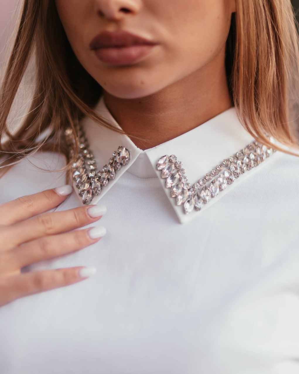 Elegante e sofisticato, questo colletto è un accessorio versatile che aggiunge un tocco di classe a qualsiasi outfit. Realizzato in tessuto morbido, mantiene la sua forma impeccabile e si adatta perfettamente su maglie, abiti o bluse. La sua forma ampia e tonda crea un contrasto netto quando indossato su capi scuri, elevando immediatamente lo stile generale. Ideale per chi desidera personalizzare il proprio look con un dettaglio chic.