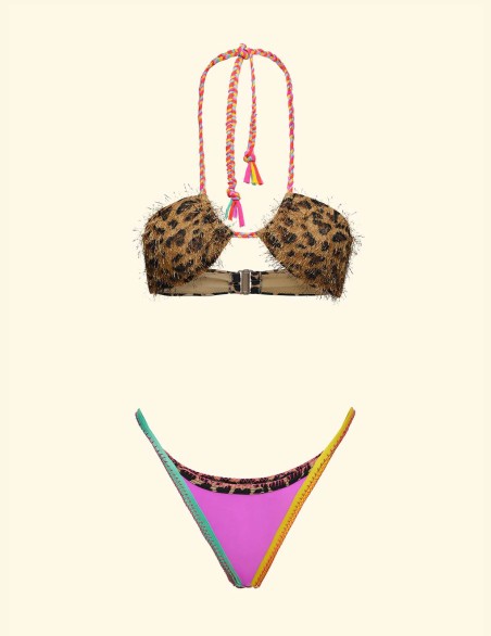 Dettagli: Capo dotato di imbottitura interna estraibile, chiusura con gancio e coppe con pelo. Spalline in treccina