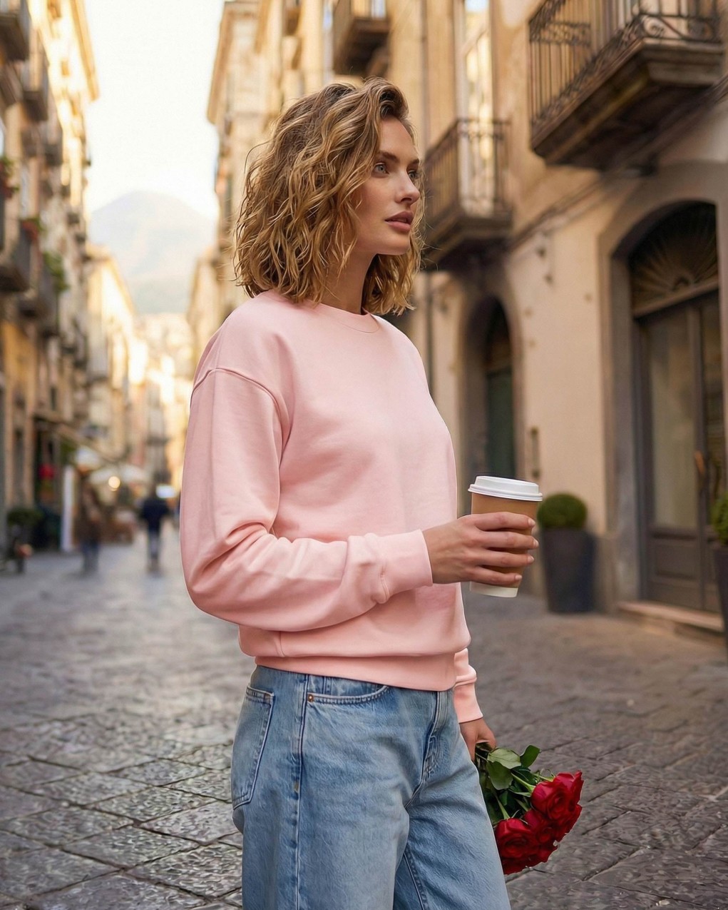 Felpa donna dal design minimalista e contemporaneo, perfetta per un look casual-chic. Realizzata in morbido tessuto felpato di qualità, presenta girocollo classico, maniche lunghe con polsini a costine e vestibilità regolare leggermente rilassata. Il taglio essenziale e le cuciture pulite garantiscono comfort e versatilità, ideale da abbinare a jeans o pantaloni per outfit quotidiani dallo stile urban elegante.