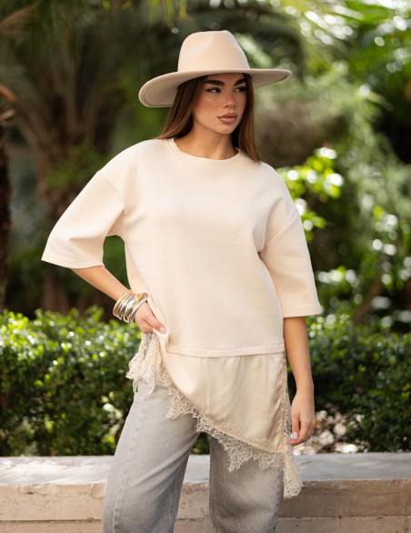 HAVEONE FELPA CON LINGERIE BORDO PIZZO