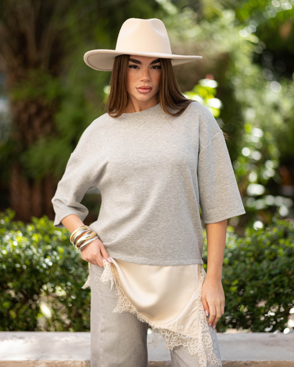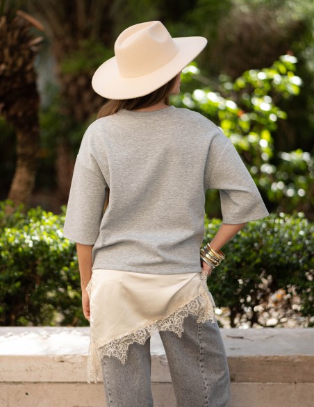 HAVEONE FELPA CON LINGERIE BORDO PIZZO