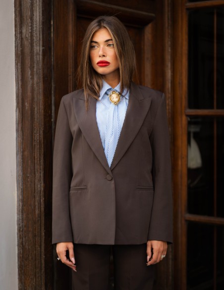 Blazer sartoriale dalla linea pulita e contemporanea, realizzato in pregiato tessuto con una percentuale di lana che garantisce comfort ed eleganza. La vestibilità regular fit con spalle strutturate e taglio leggermente oversized si adatta perfettamente a diversi stili e occasioni. Dettagli raffinati come i bottoni a contrasto e lo spacco posteriore completano questo capo essenziale del guardaroba moderno.