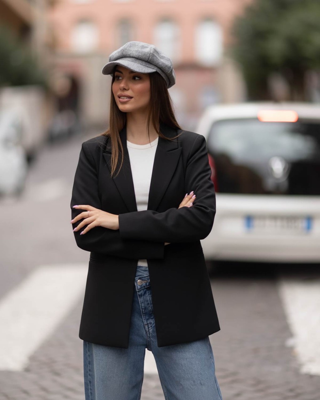 Elegante blazer oversize dal taglio sartoriale, realizzato in pregiato tessuto che garantisce comfort e durabilità. La silhouette rilassata con spalle strutturate e bottone singolo si adatta perfettamente sia a look formali che casual. Le maniche ampie e la lunghezza media rendono questo capo un essenziale versatile per il guardaroba moderno.