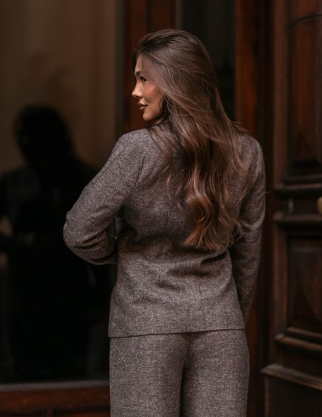 la giacca presenta un classico taglio blazer con revers strutturati e chiusura monopetto. Realizzato in tessuto mélange di qualità con texture leggermente lavorata, garantisce comfort e resistenza alle pieghe. La vestibilità è regolare e strutturata, ideale per valorizzare la silhouette con eleganza professionale.