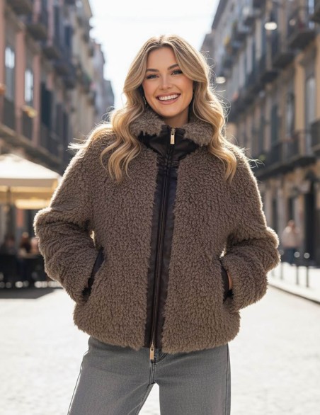 Giacca teddy in morbido tessuto effetto peluche, caratterizzata da una comoda zip frontale e tasche laterali. Il design oversized offre massimo comfort e calore durante la stagione fredda, mentre i polsini e il colletto elasticizzati garantiscono una perfetta vestibilità. Realizzata in soffice pelliccia sintetica di alta qualità, questa giacca rappresenta il perfetto connubio tra stile casual e praticità quotidiana.