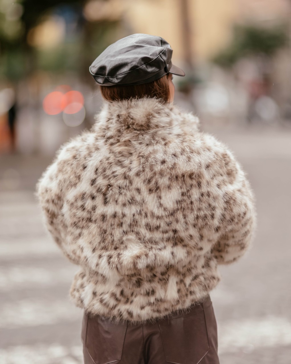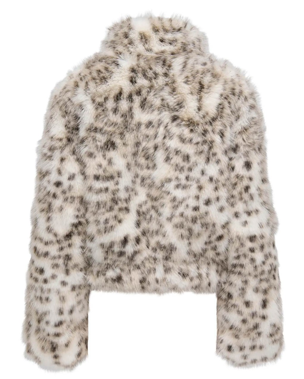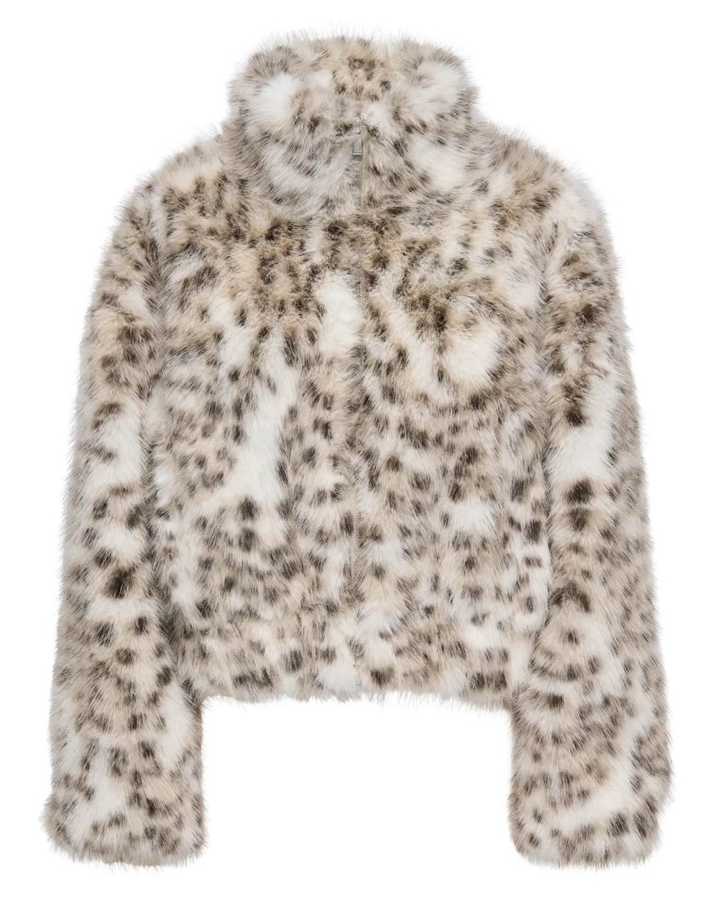 Lussuosa giacca corta in pelliccia sintetica con elegante fantasia animalier. Il modello presenta un collo alto, chiusura con zip e vestibilità leggermente oversize per un comfort ottimale. La morbida texture e la silhouette contemporanea rendono questo capo perfetto per aggiungere un tocco glamour ai look invernali.