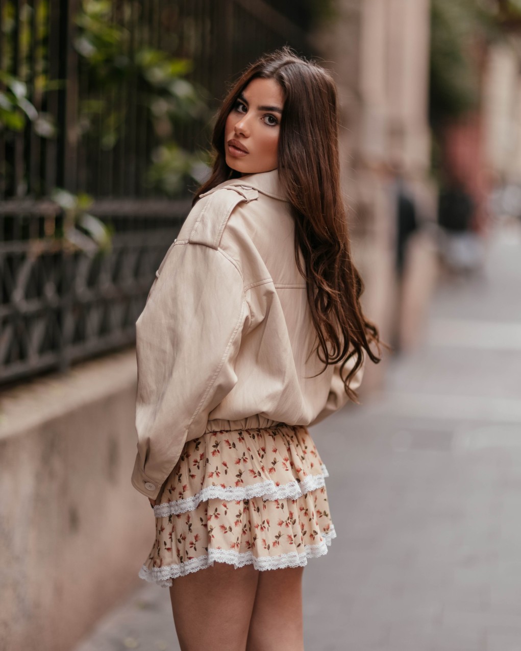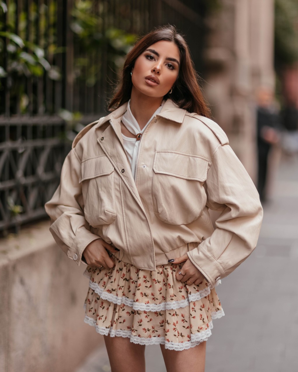 Giacca bomber in ecopelle dallo stile urban contemporaneo, perfetta per outfit casual-chic. Caratterizzata da design oversize con spalle strutturate, doppia tasca a filetto sul petto e chiusura frontale con zip. Realizzata in similpelle di qualità con finitura matte, presenta collo classico e polsini con bottoni a pressione. La vestibilità ampia e comoda garantisce un look trendy e versatile, ideale per la mezza stagione.