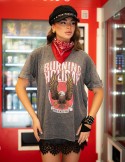 ●Elegante minigonna in ecopelle dalla vestibilità aderente, impreziosita da un raffinato bordo in pizzo sulla parte inferiore. Il design include una cintura incorporata con fibbia metallica decorativa e dettagli ad occhielli. La combinazione di materiali e la lunghezza sopra il ginocchio la rendono perfetta per look sia casual che da sera.