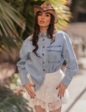 Minigonna romantica in delicato pizzo con design a balze sovrapposte per un look femminile e sofisticato. Realizzata in tessuto leggero e trasparente, presenta una struttura a più strati che crea movimento e volume. La vestibilità è a vita alta con elastico in cintura per garantire comfort e praticità. Ideale per creare outfit eleganti casual abbinata a camicie in denim o bluse semplici.