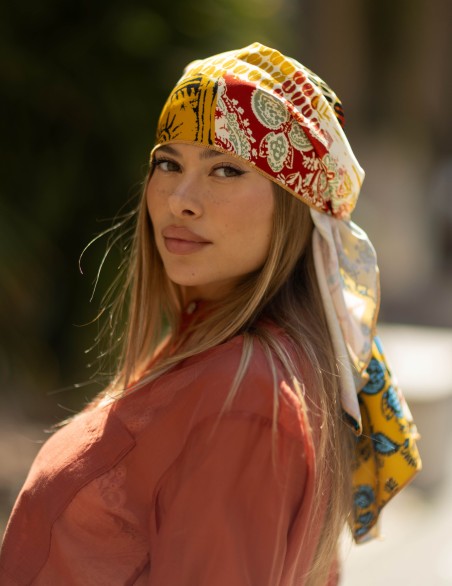 Pareo in stile patchwork con design bohémien contemporaneo.