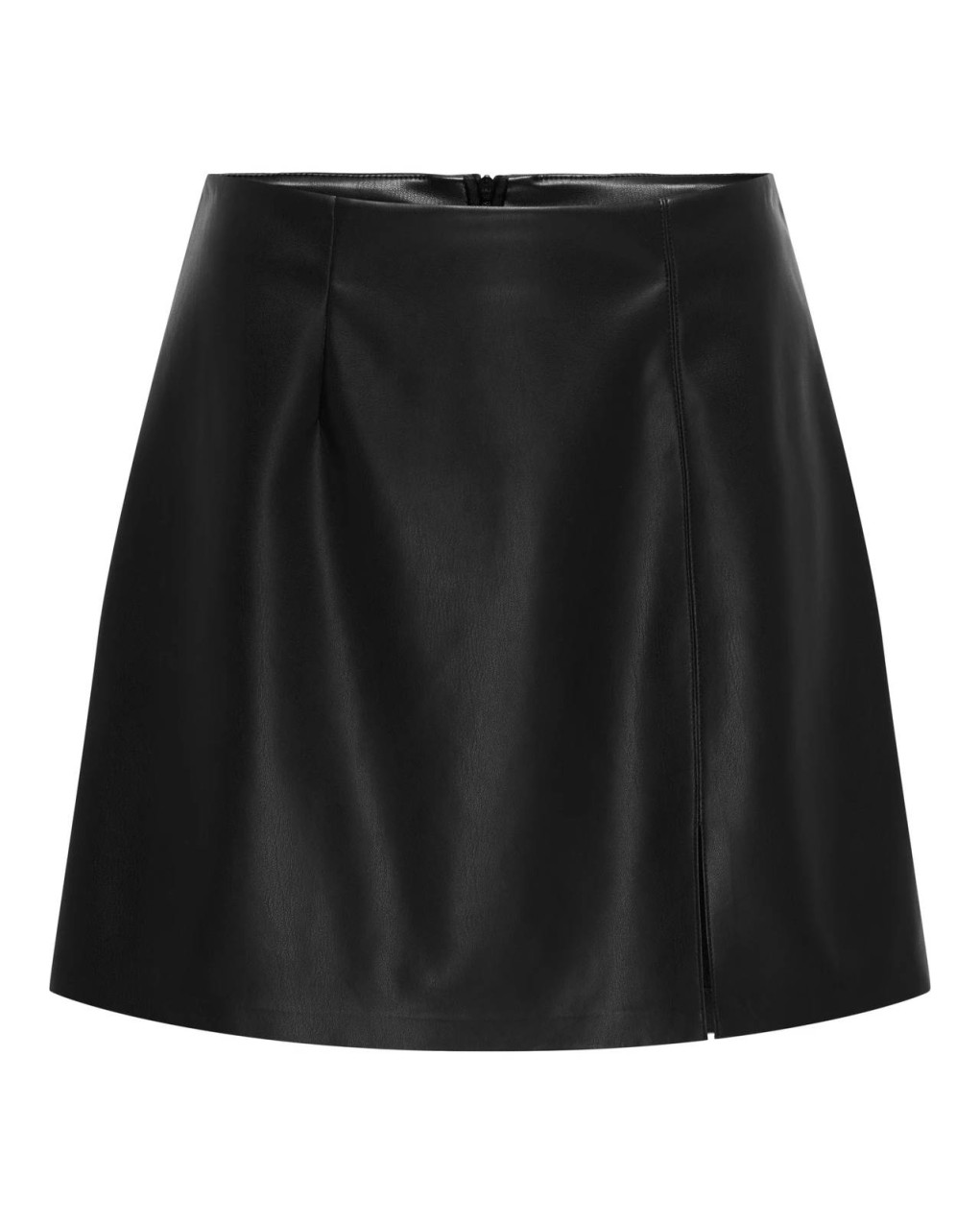 Minigonna in ecopelle dalla linea svasata con elegante spacco laterale. Design minimalista caratterizzato da una vestibilità moderna e confortevole, impreziosito da sottili pinces sul davanti. La chiusura con zip nascosta e la finitura matt della texture garantiscono un look sofisticato e versatile.