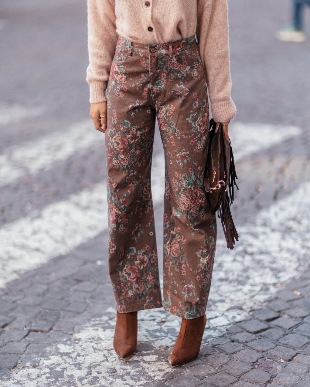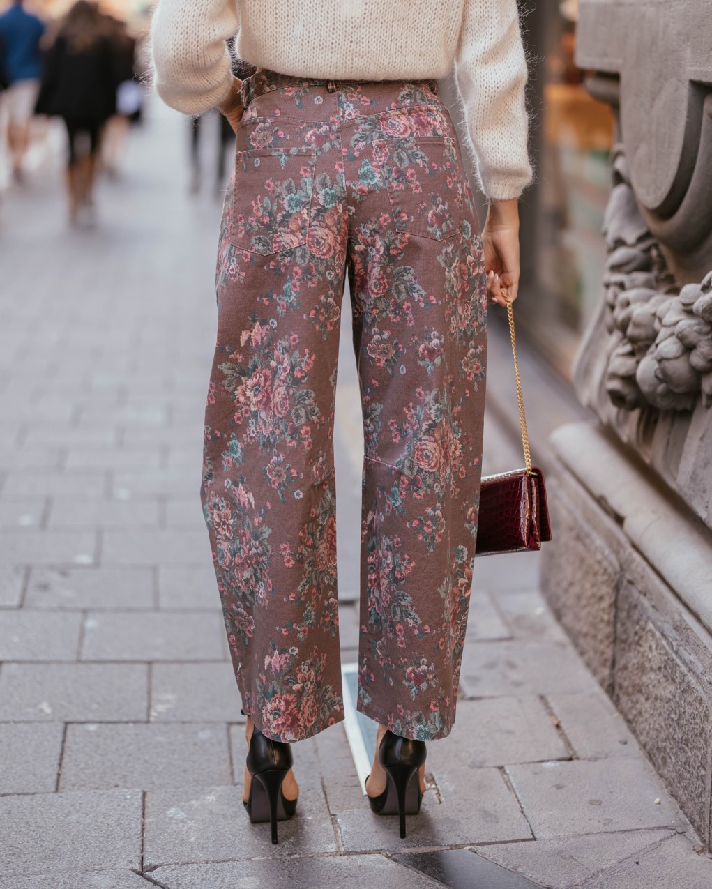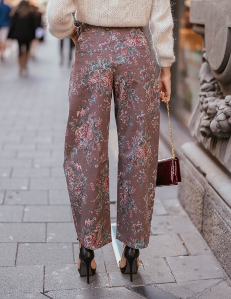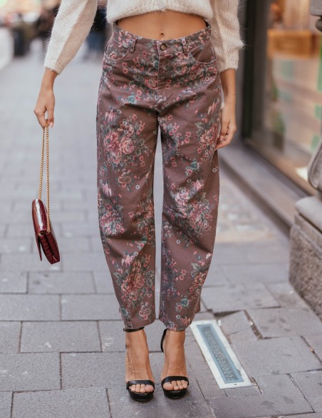 Jeans con raffinato motivo floreale all-over, realizzati in denim di alta qualità per garantire comfort e durabilità. Il taglio leggermente morbido sulla gamba si stringe delicatamente alla caviglia, creando una silhouette moderna e versatile. Dotati di tasche classiche e bottone in vita, questi jeans rappresentano il perfetto equilibrio tra stile vintage e tendenze contemporanee.